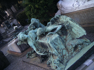 cuando estuve en milan fui a visitar el cementerio donde hay muchas personas conocidas alli enterradas como volta, el inventor de la pila, sin el mi padre no hubiese sido nadie jejejeje, bueno bromas a parte, me gusto mucho el cementerio por que es super tetrico y super misterioso y si no aqui os dejo unas fotillos para que veais que estatuas mas pintorescas y mas miedosas